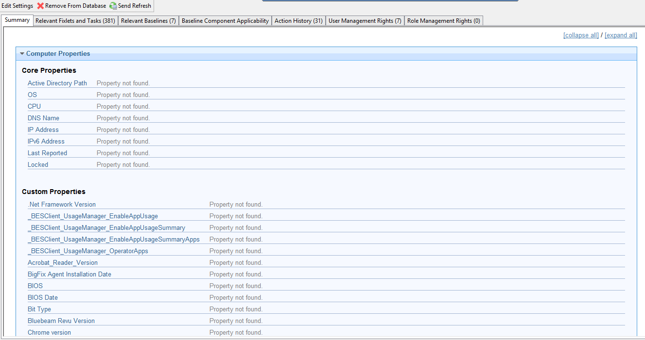 When I look at the list window in the BigFix Console v9.5.6.63 I am getting “” messages. Has anyone ever ran into this. Some are grayed out but some are black.