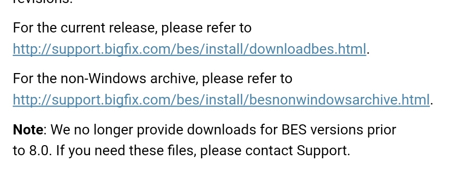 Is there a place where I can download the old 7.2 and 8.0 BigFix Client installers for old operating systems? The BigFix archive download page doesn’t go back that far.