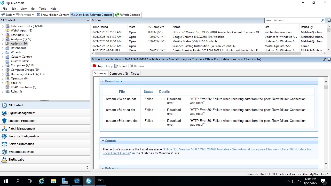 Fixlet #305179639 – Office 365 Version 16.0.17928.20654 Available Semi-Annual Enterprise Channel – Office 365 (Update from Local Client Cache) Released: August 12, 2025