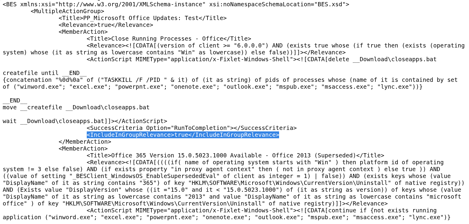 After doing that, the PP Action was Relevant for machines which don’t have any Relevant Office Fixlets.