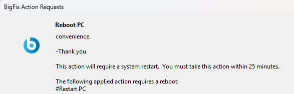 Anyone know how to suppress the name of my fixlet when the post-action message is displayed (“The following applied action requires a reboot:)?