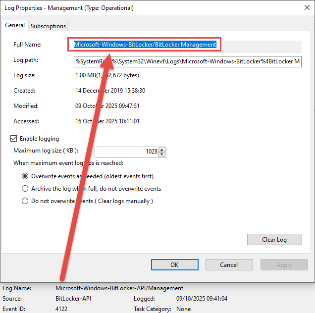 I am working on one the client requirement where i need to read the event viewer logs on Windows machine using BigFix Analysis, Absolute path of the event log is Event Viewer → Applications and Services Logs → Microsoft → Windows → BitLocker-Management → Management, I want to search a keyword “TPM” if that keyword found then it should provide me the information of Level, Date & Time, Source, Event ID and it should provide the information mentioned inside the GENERAL tab. Kindly help me to achieve this task.