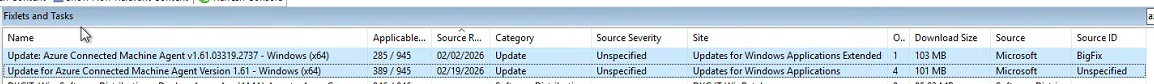 Hi, I just noticed there are 2 fixlet for Azure Connected machine Agent 1.61 version, which one to be used.